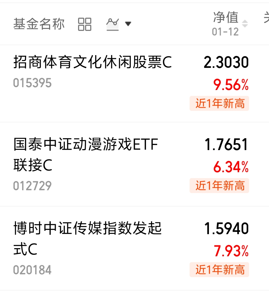 大盘昨天继续上涨,军工、传媒等板块昨天涨了不少呢,$招商体育文化休闲股票C$ 昨天大涨9.56%,太给力了吧!