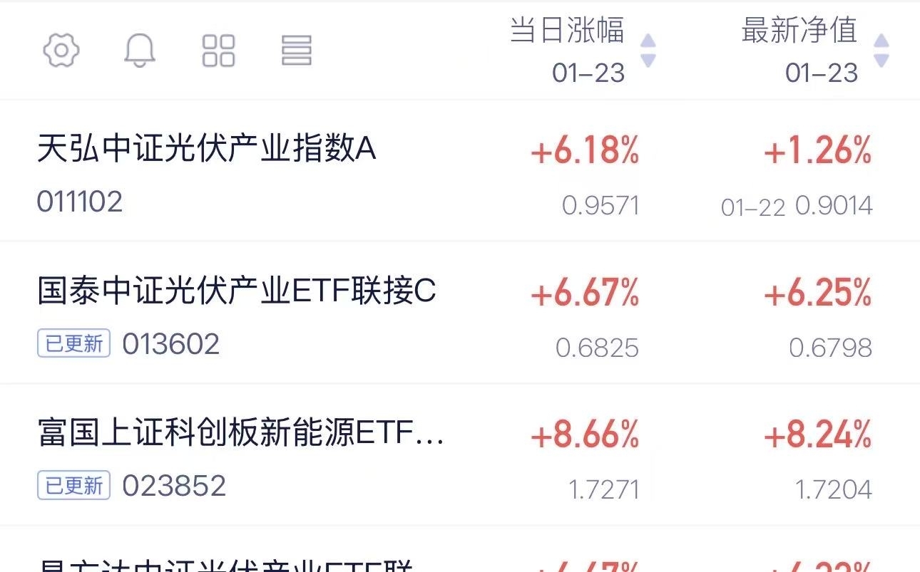 同样都是新能源光伏基金,能明显发现富国上证科创新能源基金上涨8%。