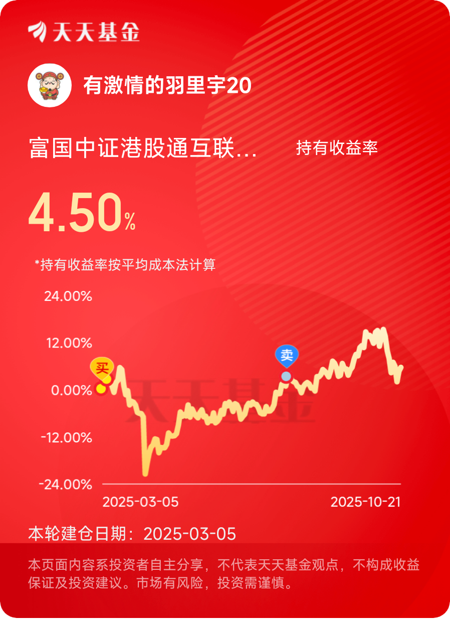 $富国中证港股通互联网ETF发起式联接C$ 国内最优质的AI企业都在港股互联网里面,继续逢低买入#晒收益#
