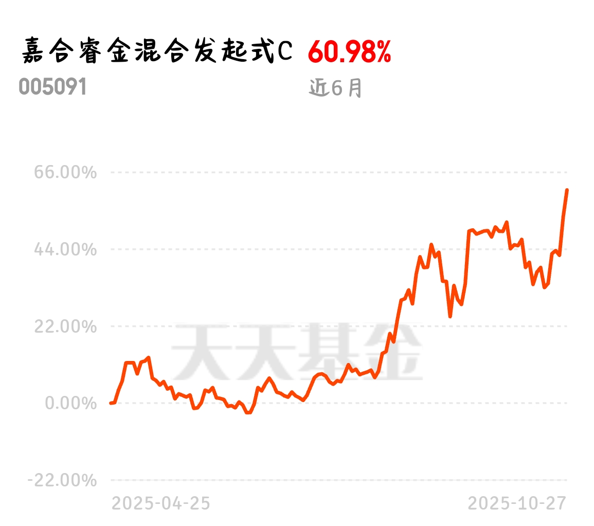 光模块企业Q3营收增48%,存储企业净利润增120%,科技股盈利暴增。嘉合睿金混合C押对CPO+存储芯片,1周20个点,近6个月60.98%,业绩真亮眼。