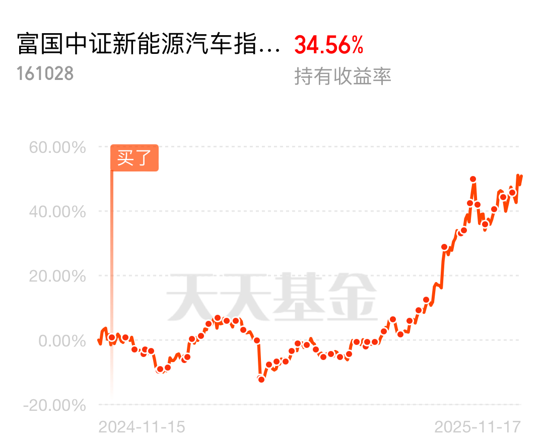 以前我觉得定投是需要强大的毅力的,我好像并不具备这样的品质,后来还是尝试了一次,这就是回报$富国中证新能源汽车指数(LOF)A$