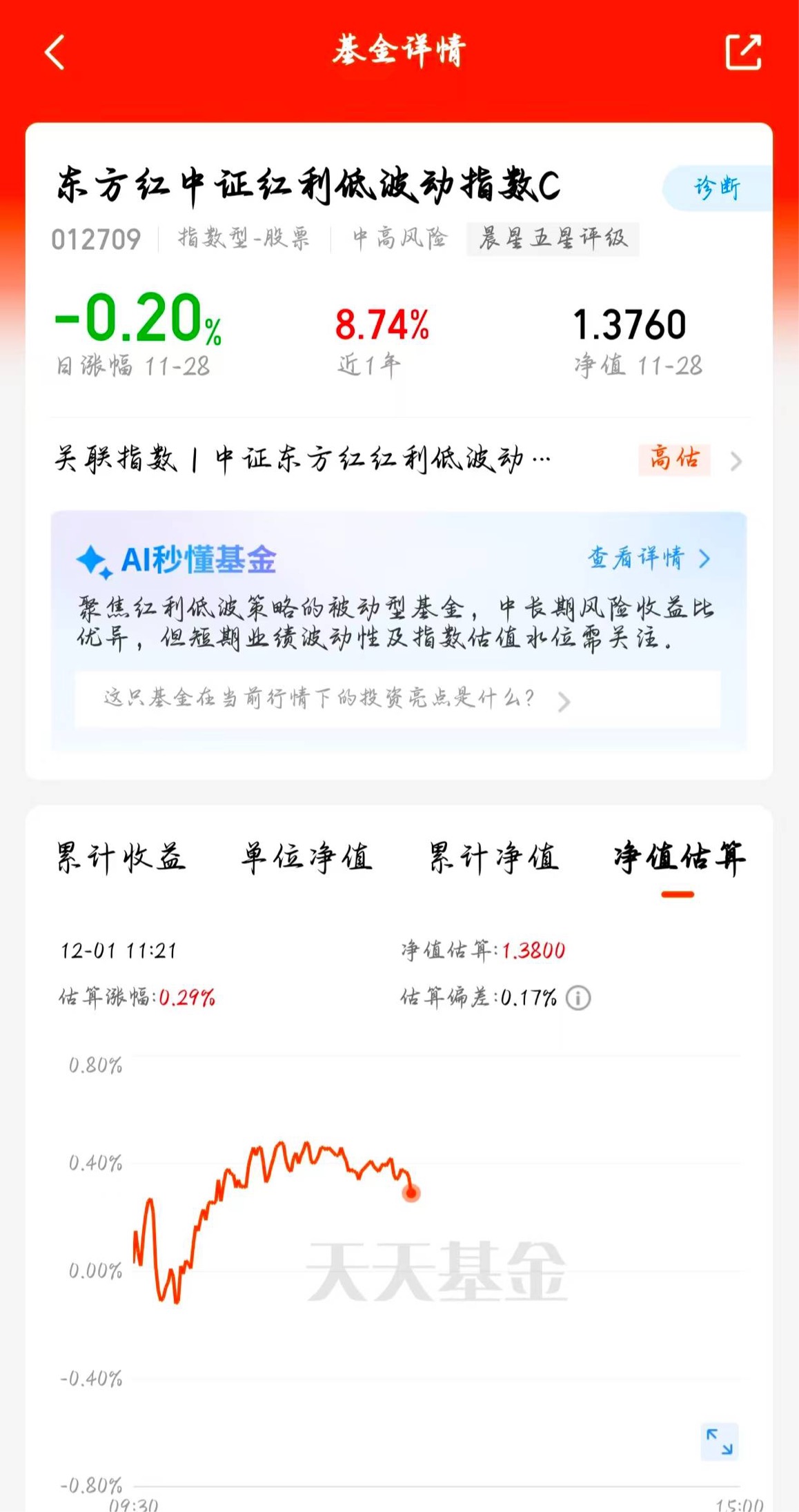 东方红中证红利低波动指数C的低波动特性在控制风险方面表现很出色,同时还能分享企业