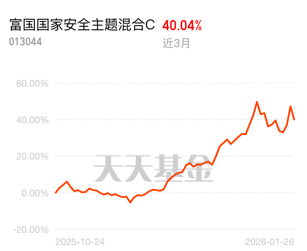 富国国家安全主题混合 C 持续上涨,近三月涨 40.04%,长期业绩能打,专注国家安全赛道,中风险高收益,把握红利超合适
