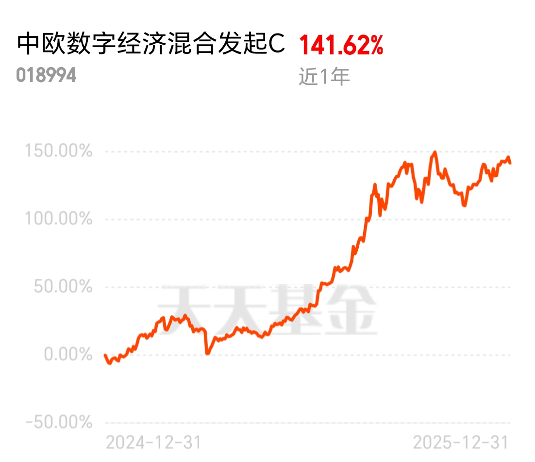 2026 年 AI 应用要再次爆发,智能体都落地到金融、制造领域了。追高不划算,科技板块更靠谱,近期回调给了好机会,中欧数字经济混合发起 C 近 1 年 141.62%,贴合国产算力替代趋势,长期有奔头。
