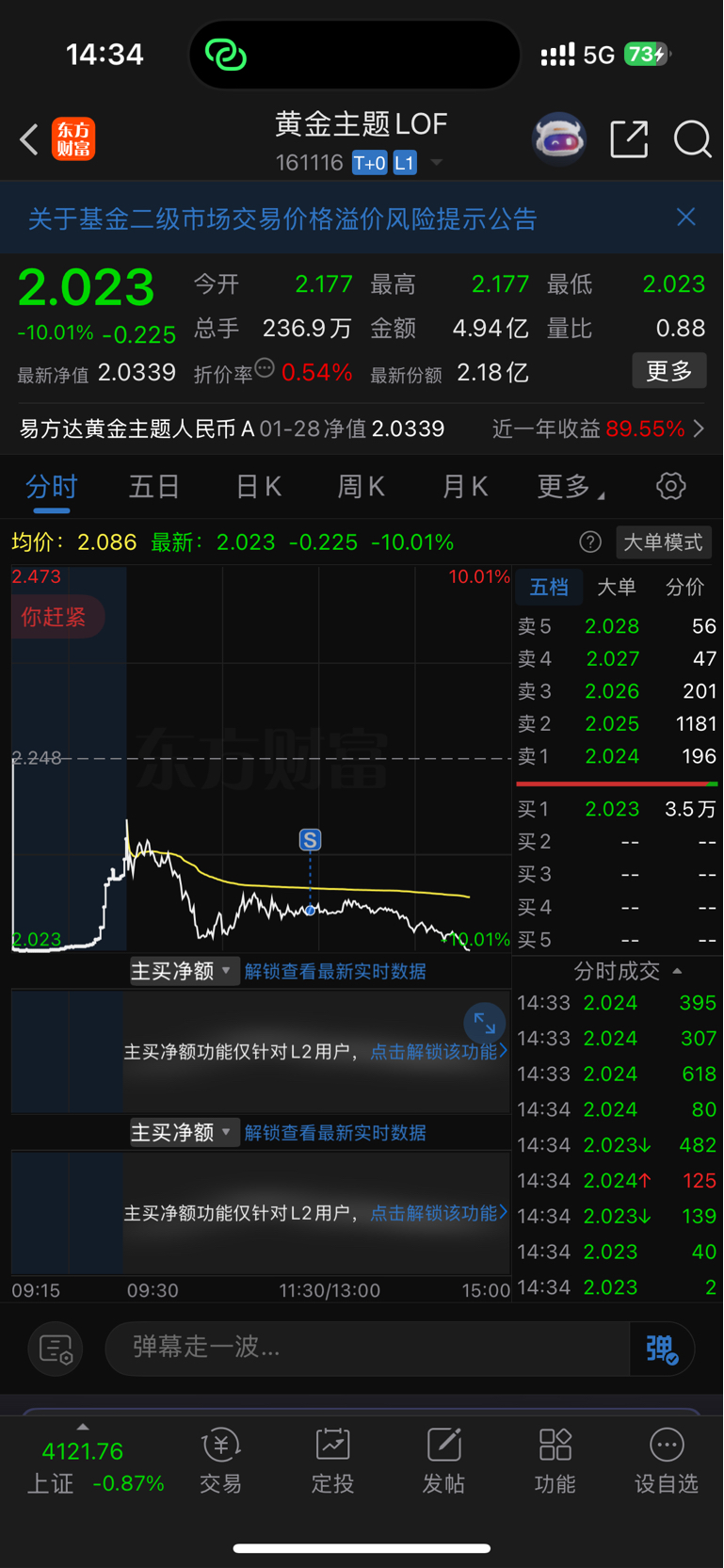 $黄金主题LOF(SZ161116)$ 恐怖,不知道要回调多久