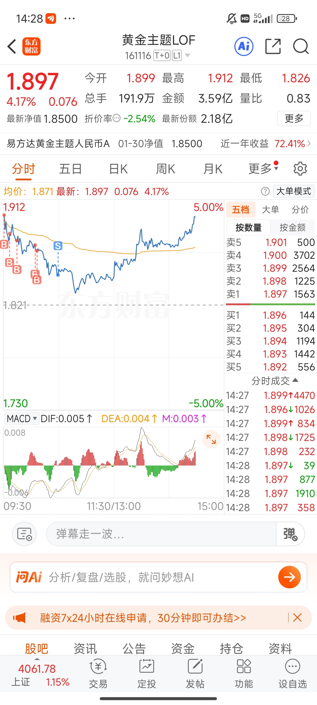$黄金主题LOF(SZ161116)$ 它搭夜的,一买就跌,一卖就涨。