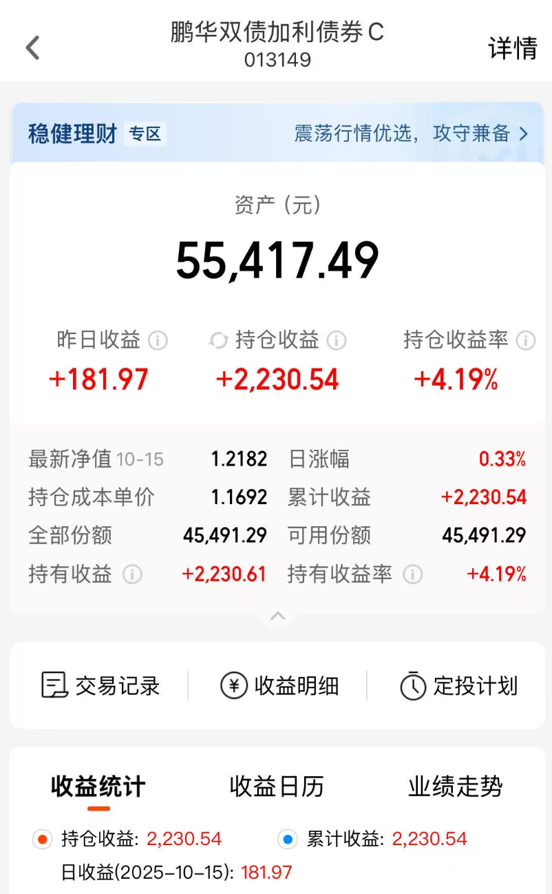 固收+$鹏华双债加利债券C(OTCFUND|013149)$