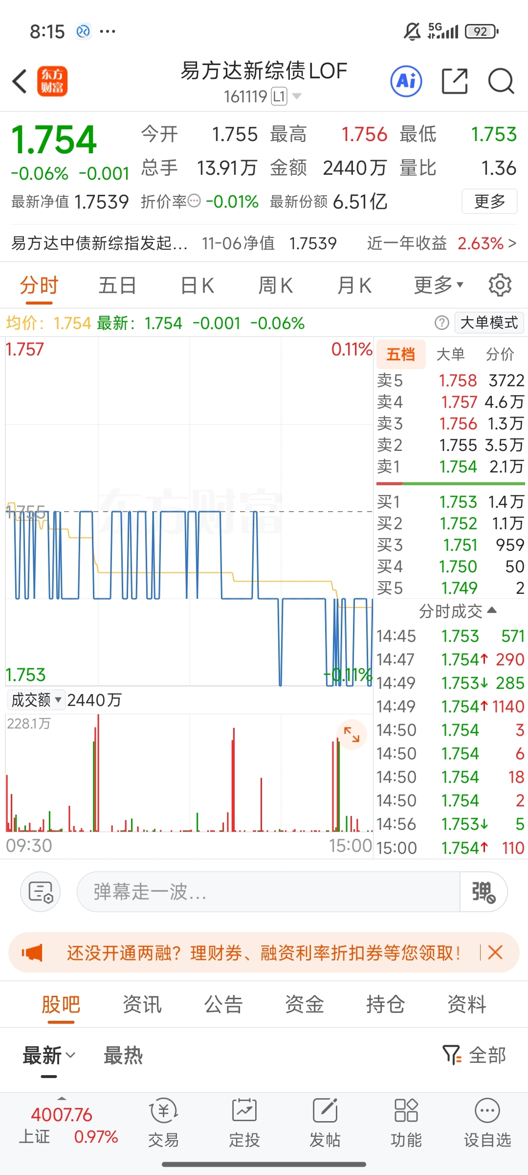 $易方达新综债LOF(SZ161119)$ 又是亏钱的一天