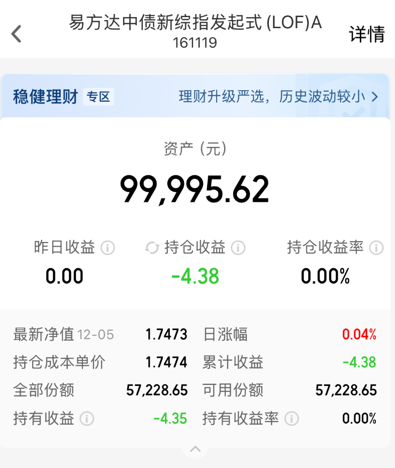 $易方达中债新综指发起式(LOF)A(OTCFUND|161119)$