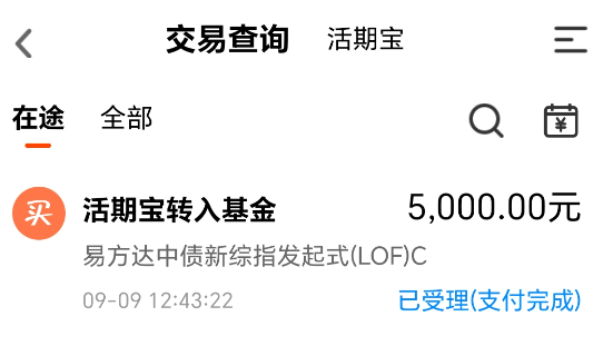 纯债:$易方达中债新综指发起式(LOF)C(OTCFUND|161120)$+5000元。
