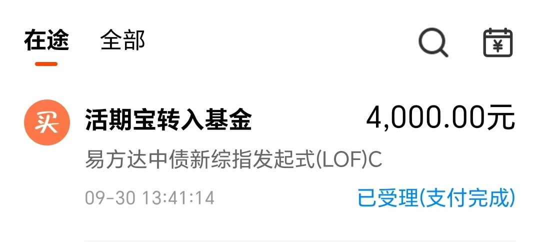 纯债:$易方达中债新综指发起式(LOF)C(OTCFUND|161120)$+4000元。