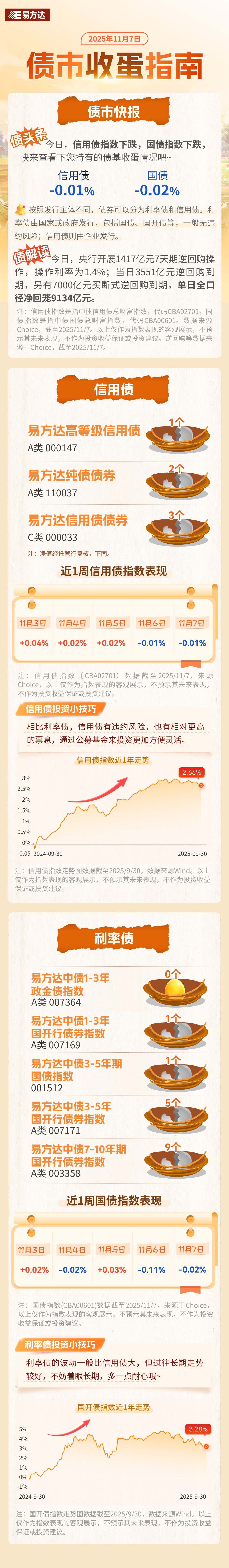 11月7日,信用债指数下跌、国债指数下跌,快来查看您持有的债基收蛋情况吧!