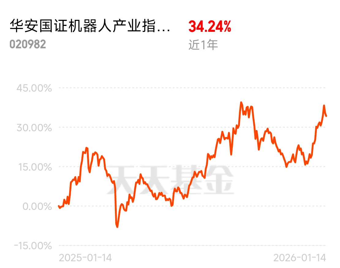 $华安国证机器人产业指数发起式C$聚焦机器人,近1年涨34.24%,低费布局正当
