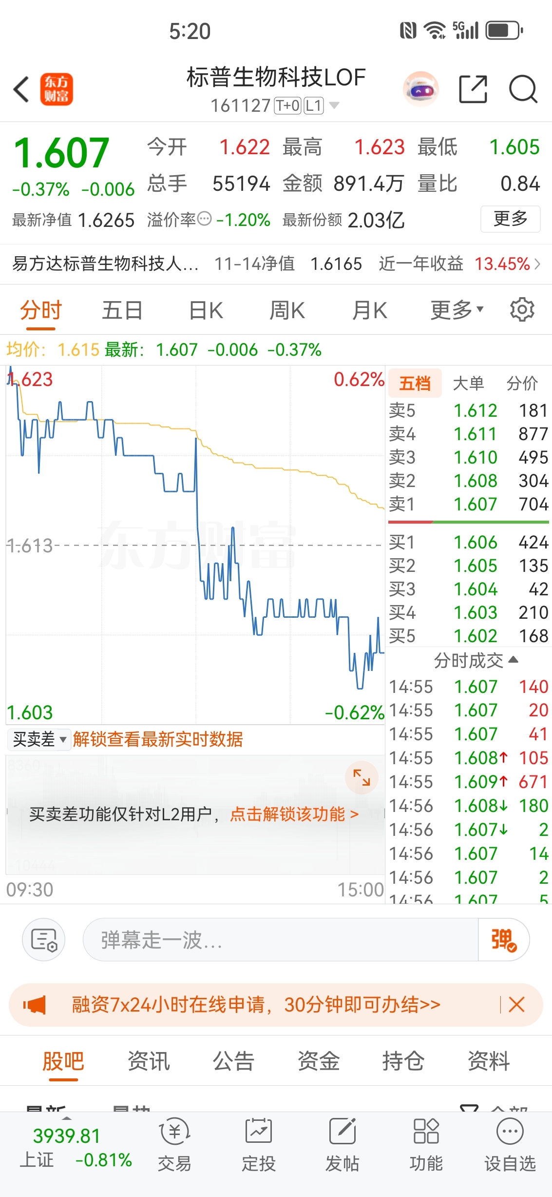 $标普生物科技LOF(SZ161127)$ 都是谁在卖,折价1.2都还卖