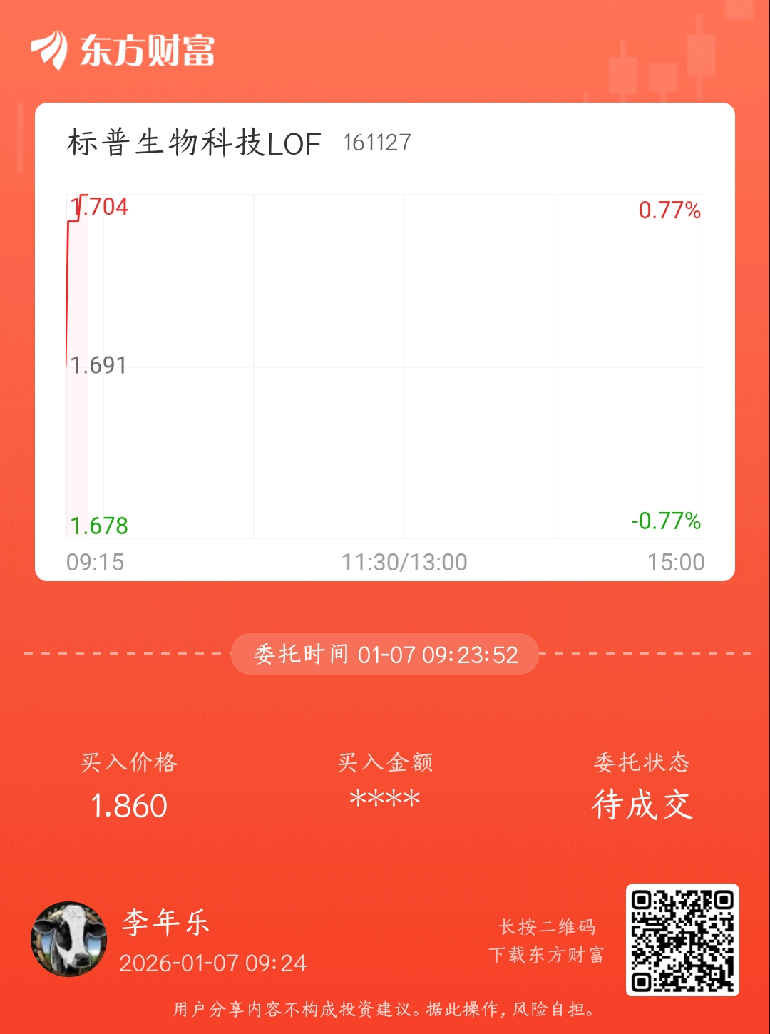温馨提示: 1.根据《证券法》规定,禁止编造、传播虚假信息或者误导性信息,扰乱证券市场;2.用户在本社区发表的所有资料、言论等仅代表个人观点,与本网站立场无关,不对您构成任何投资建议。用户应基于自己的独立判断,自行决定证券投资并承担相应风险。《东方财富社区管理规定》