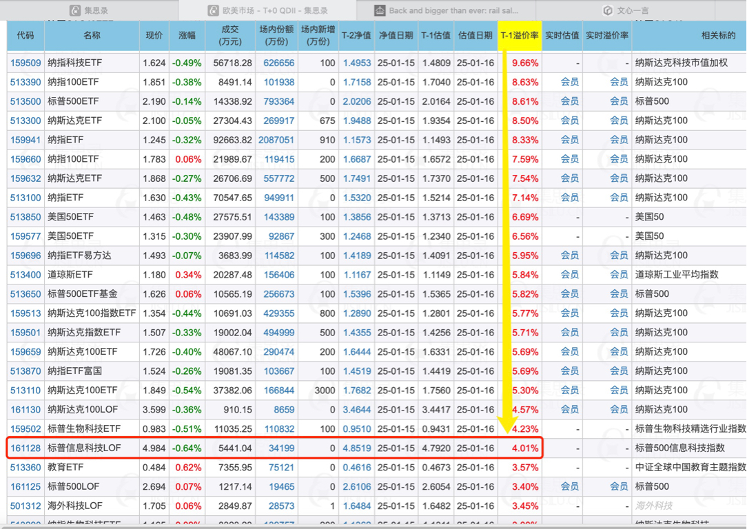下周一美股不开盘,纪念马丁路德金,收盘价对比1月16日净值,溢价率4.01%