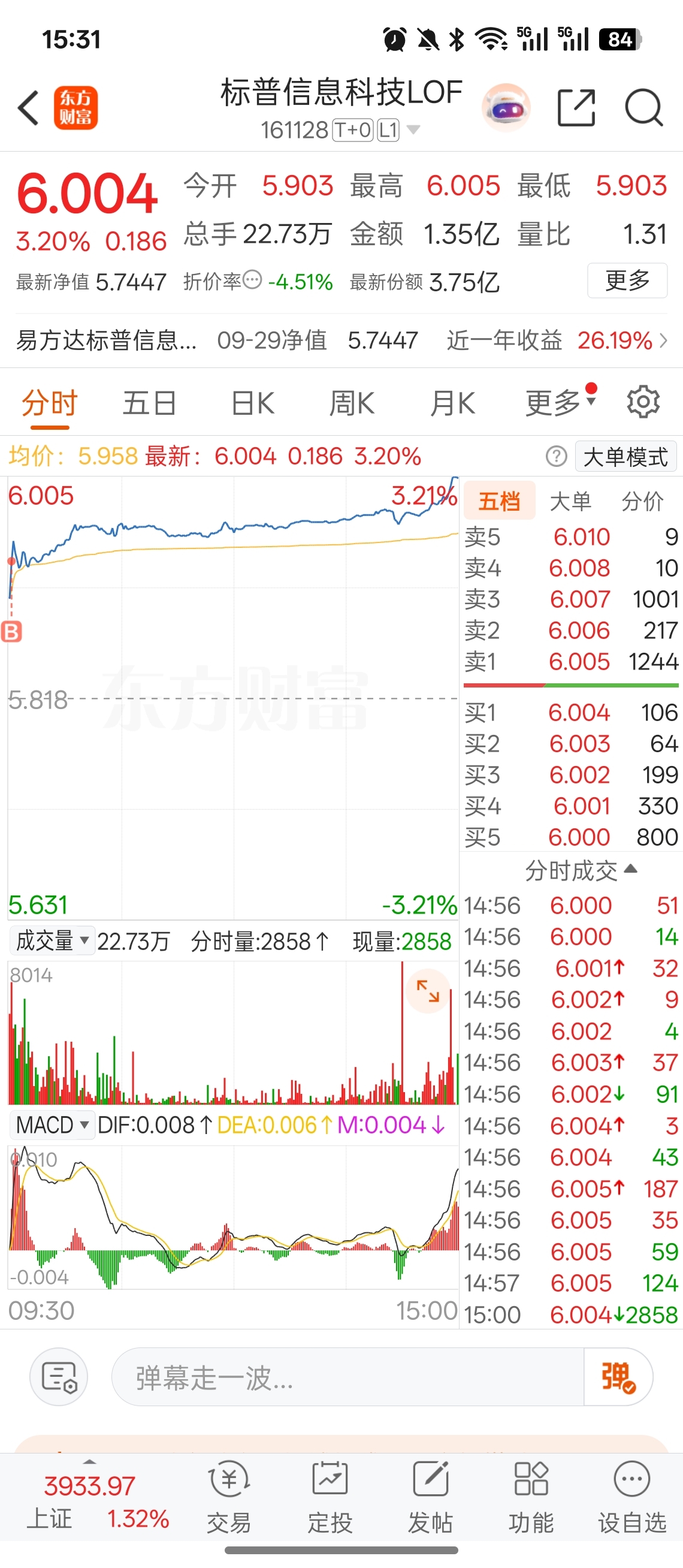 $标普信息科技LOF(SZ161128)$ 开盘买晚了