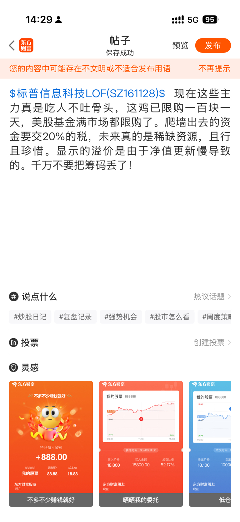 温馨提示: 1.根据《证券法》规定,禁止编造、传播虚假信息或者误导性信息,扰乱证券市场;2.用户在本社区发表的所有资料、言论等仅代表个人观点,与本网站立场无关,不对您构成任何投资建议。用户应基于自己的独立判断,自行决定证券投资并承担相应风险。《东方财富社区管理规定》