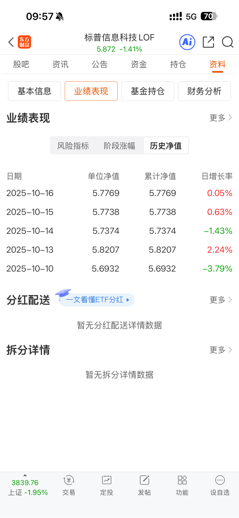 【20251020】今天标科最新净值约5.7953,开盘前溢价率约1.32%