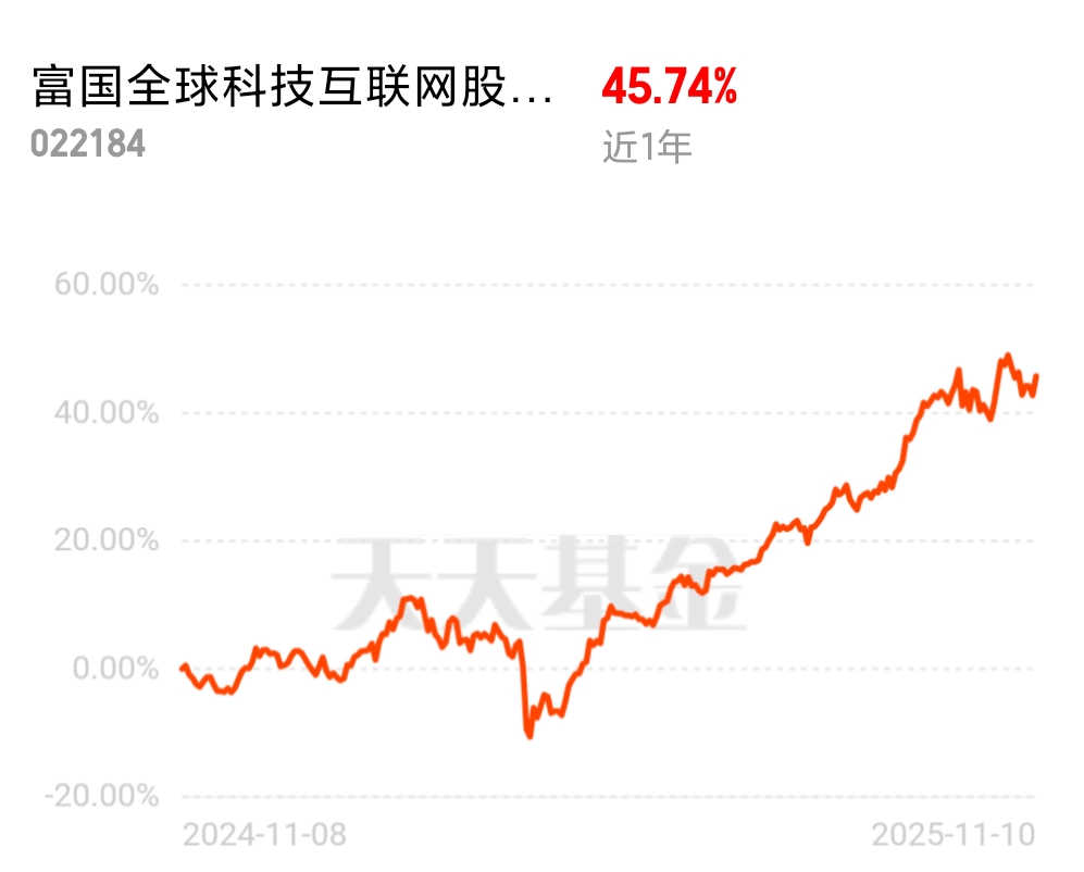这阵子把易方达标普信息科技A的部分仓位转到富国全球科技互联网C,它调仓更聚焦美股科技龙头,像英伟达、微软、台积电都在前十大,近一年涨了46%,超越纳指和多数同类,关键是现在还有额度能买。