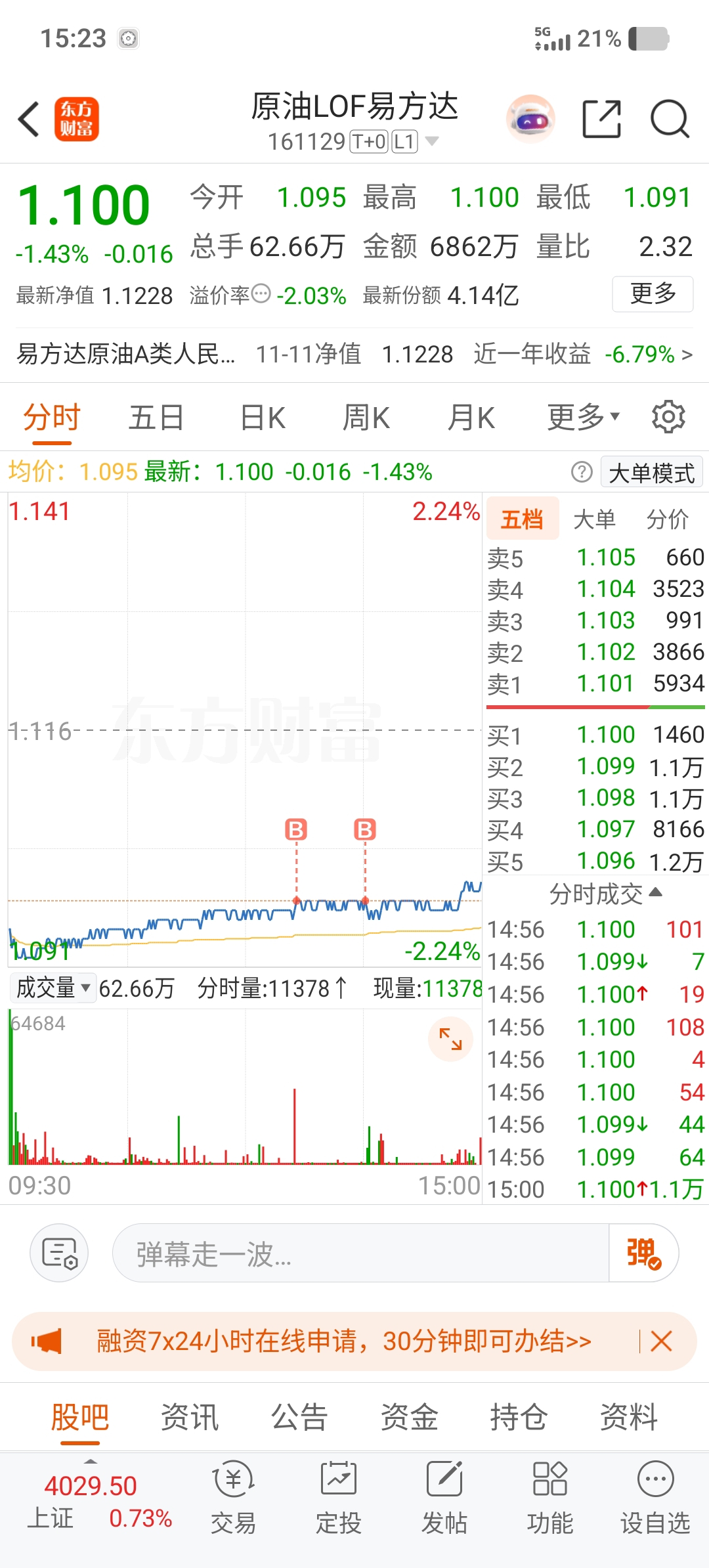 $原油LOF易方达(SZ161129)$ 小仓位建仓