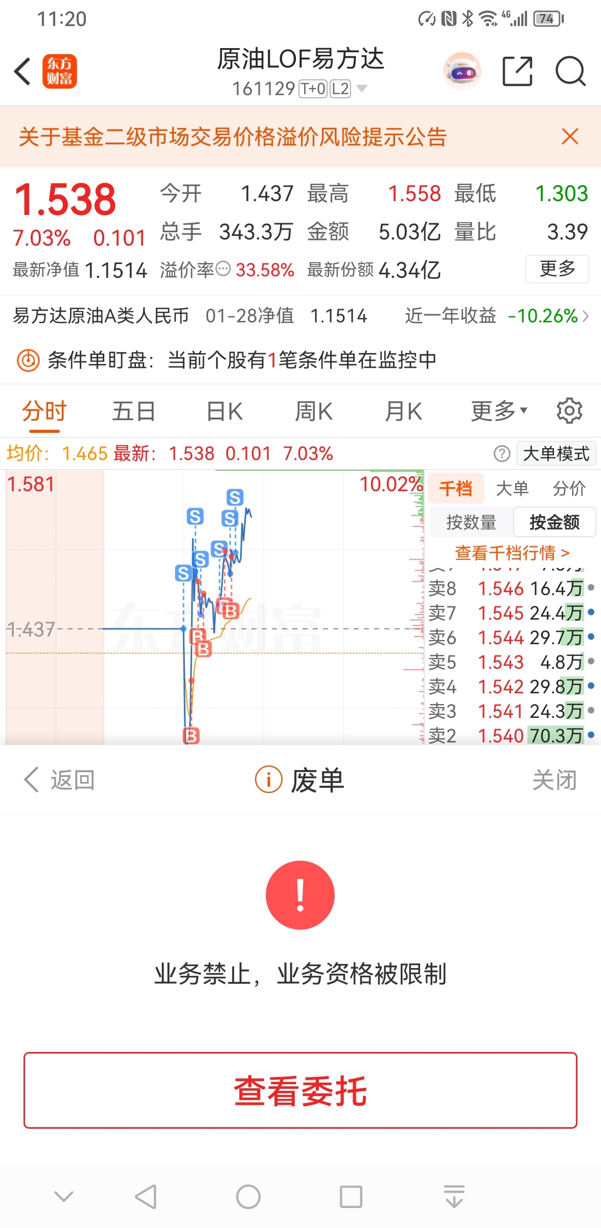 $原油LOF易方达(SZ161129)$ 谁知道这是咋回事,我为啥被限制了,啥时候能给我解开。我的筹码啊