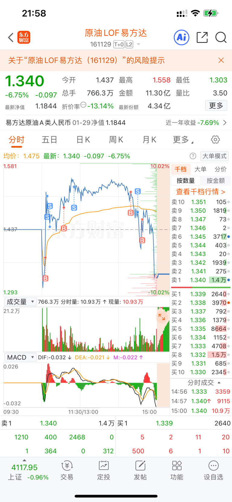 $原油LOF易方达(SZ161129)$ 确实挺贪的 哈哈一直都是这样贪 挂自己太贪