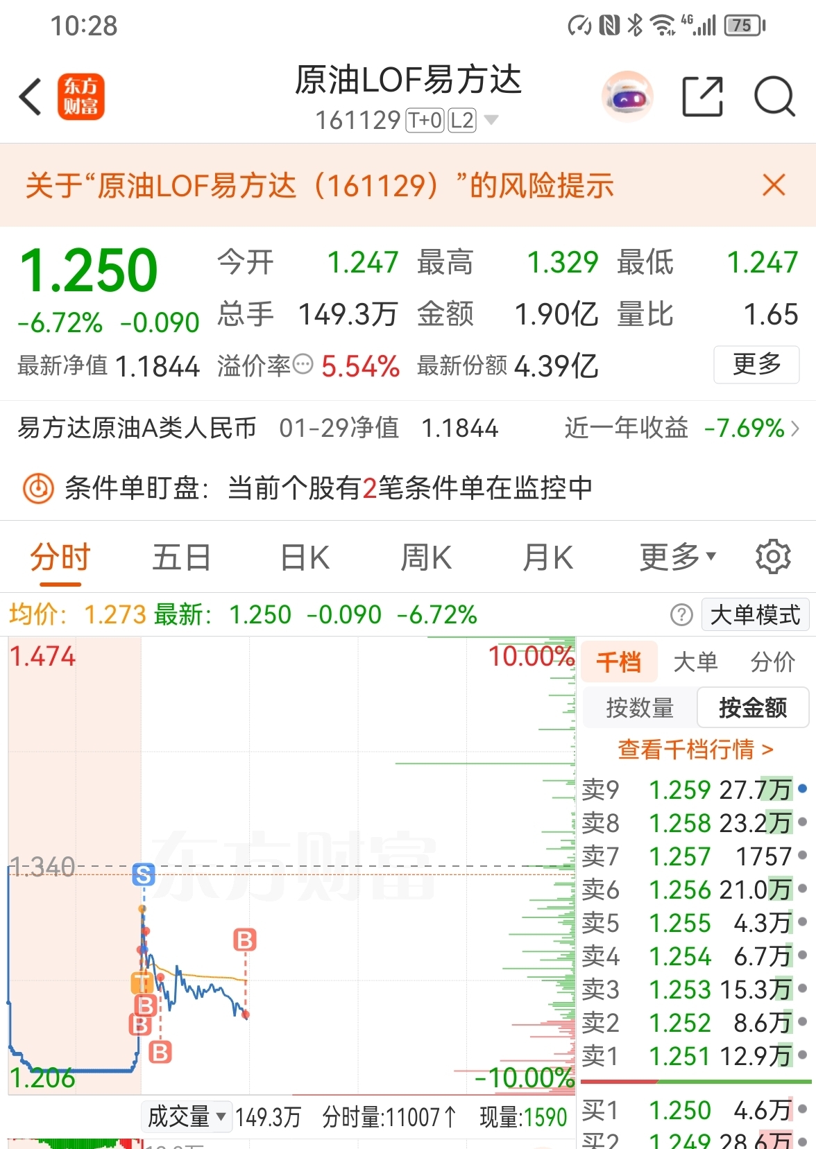 $原油LOF易方达(SZ161129)$ 哎,今天惨了,加了一半仓位了,剩下一半留给跌停价格了