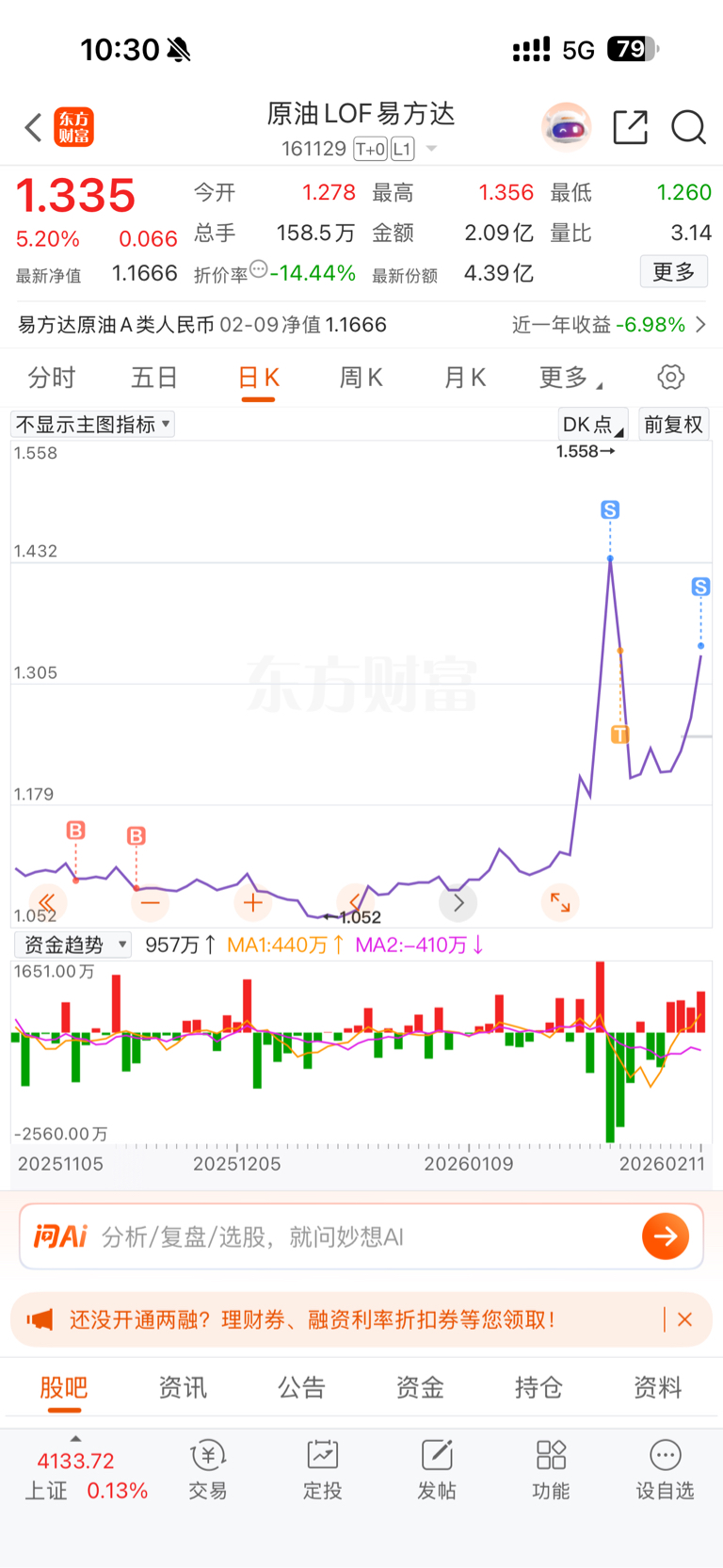 $原油LOF易方达(SZ161129)$ 我先跑了