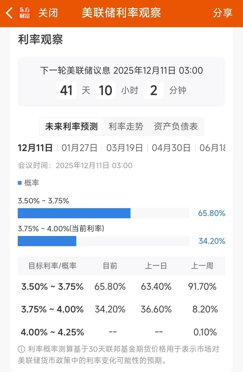 10月降息25BP,本来是好事,不过鲍威尔泼冷水说,12月不降息,导致降息概率大