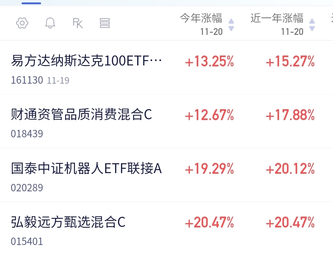 $易方达纳斯达克100ETF联接(QDII-LOF)A(人民币)$ $财通资管品质消费混合发起式C$ $国泰中证机器人ETF发起联接A$