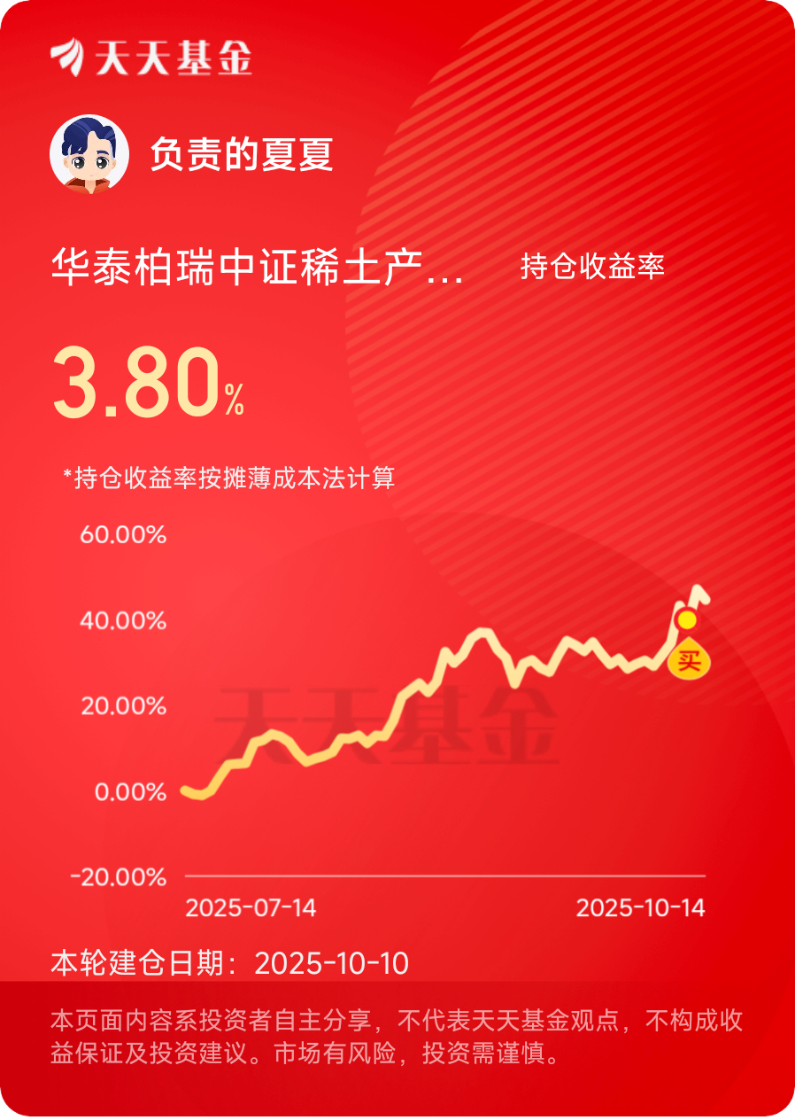关税反制助推稀土行情,$华泰柏瑞中证稀土产业ETF发起式联接C$ 近一年88.12%涨幅,趋势强劲,调整就是加仓点。#晒收益#