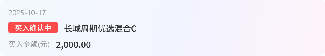 $长城周期优选混合发起式C(OTCFUND|021637)$加仓2000元。