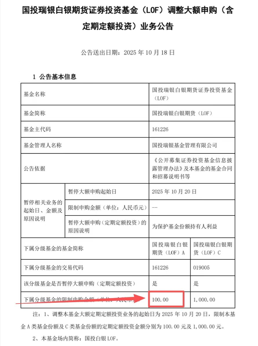$国投白银LOF(SZ161226)$ 20号开始要限额了