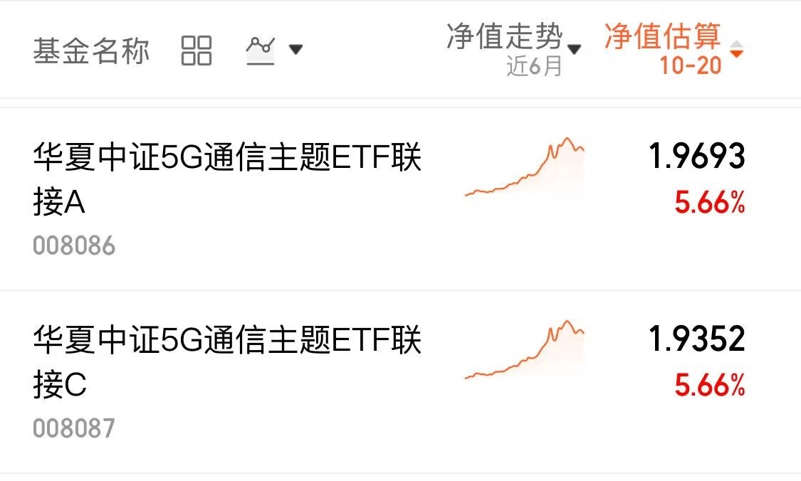 依旧看好科技板块的前景,今天这基走势不错,当前上涨超5%,近6个月收益94.04%,同类排名排16,$华夏中证5G通信主题ETF联接C$长期趋势好,继续持仓