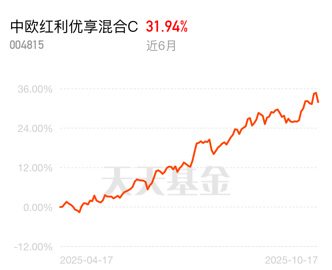 10 月 A 股风格切来切去,没个明确主线,外围还老有不确定,黄金也开始波动要调整。这时候红利板块就显优势了,国家队加持,涨得比科技基金还猛!中欧红利优享 C 稳得很,蓝小康稀缺,红包领了小几十,每天买点,把红利仓位加上去!$中欧红利优享混合C$