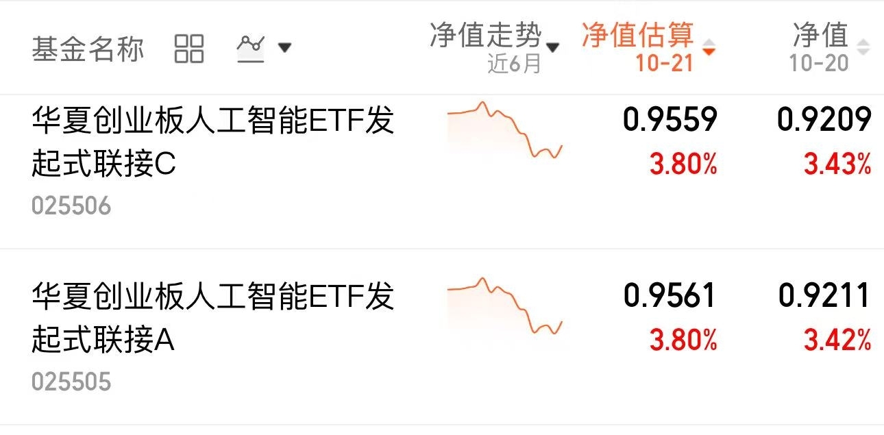 重要会议临近,人工智能作为重点布局方向,长期趋势一直在,昨天收益3.43%,近4天3天上涨,$华夏创业板人工智能ETF发起式联接C$上扬趋势形成,入手了
