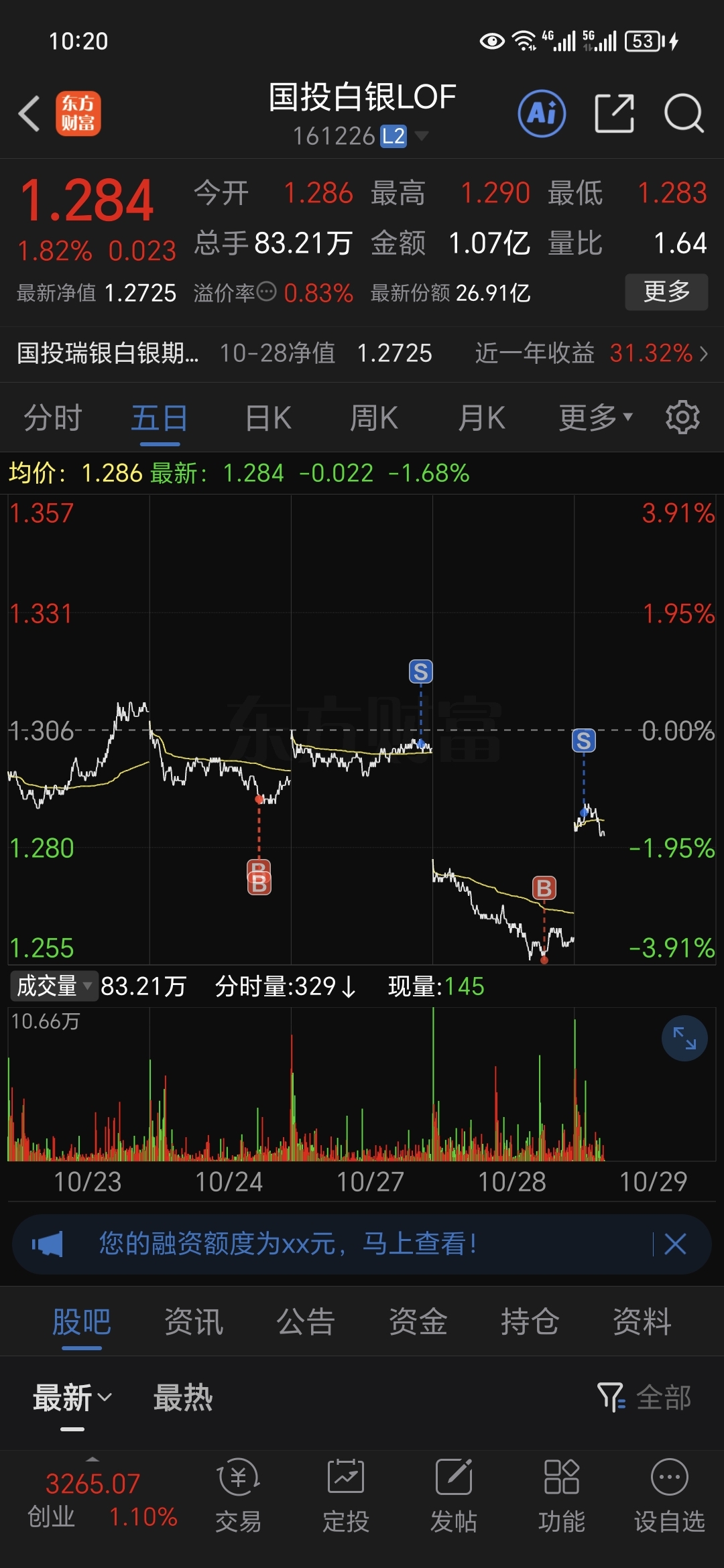 $国投白银LOF(SZ161226)$ 价值投资。1.245在买回来