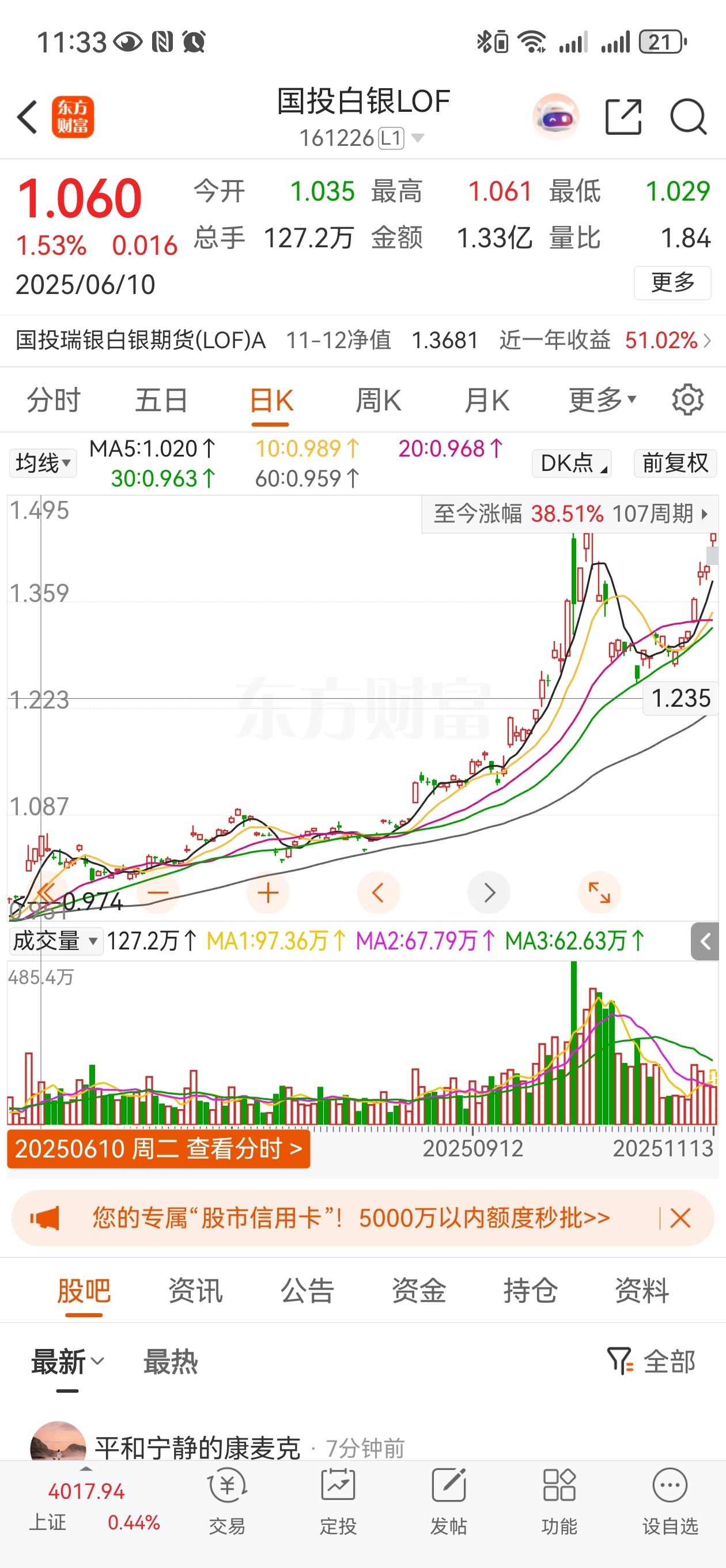$国投白银LOF(SZ161226)$ 六月10号到今天。期货涨了百分之40.4% 你这个基金涨了36.4%,请问剩下的百分之4去哪里了? 利润你抽百分之十吗?10%的利润去哪里了?