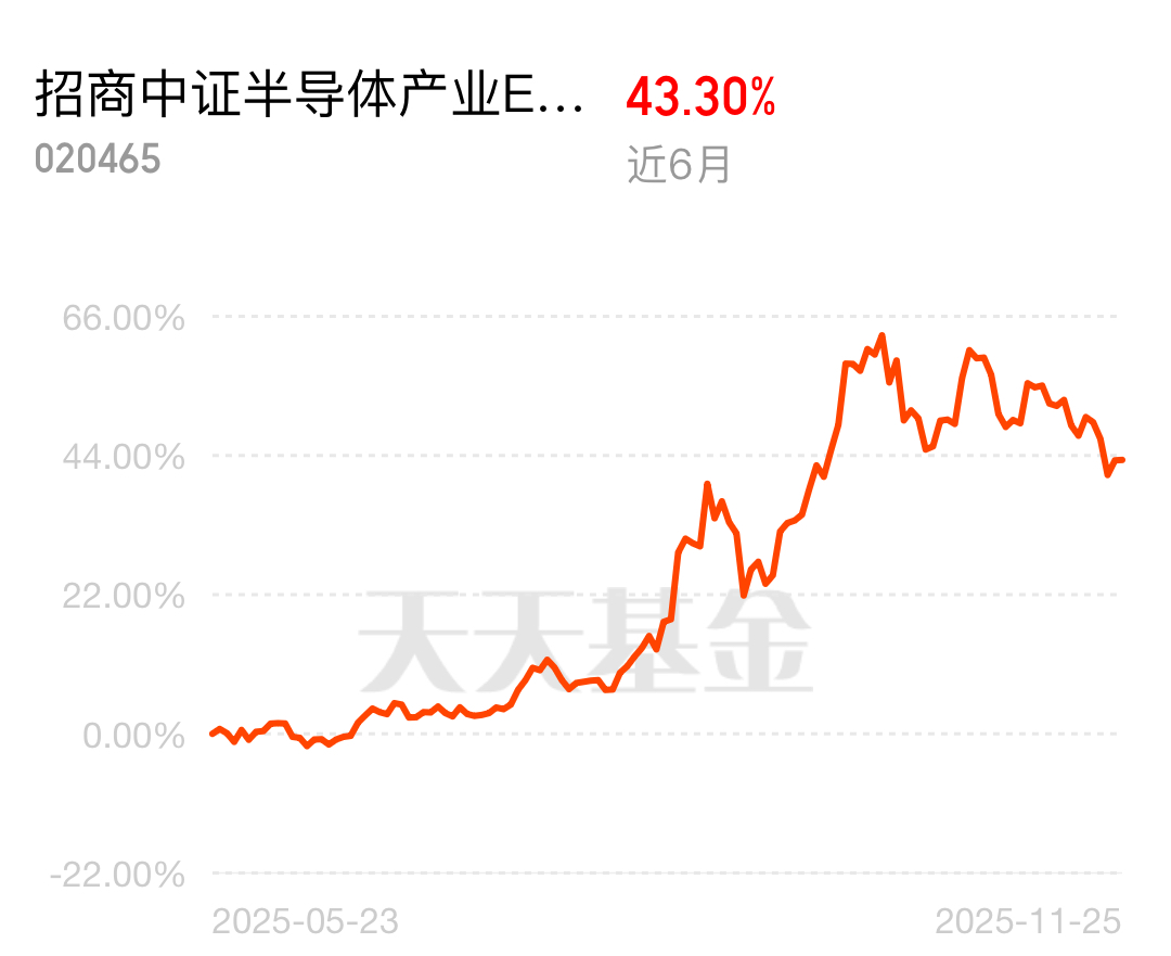 科技板块今天热度回升,半导体板块再度领涨,短期有国内GPU第一股摩尔线程开启申购的催化。招商中证半导体产业ETF联接C表现出色,近6个月上涨43.30%,长期来看中芯国际、华虹半导体产能利用率居高不下,行业需求旺盛,支撑力十足。
