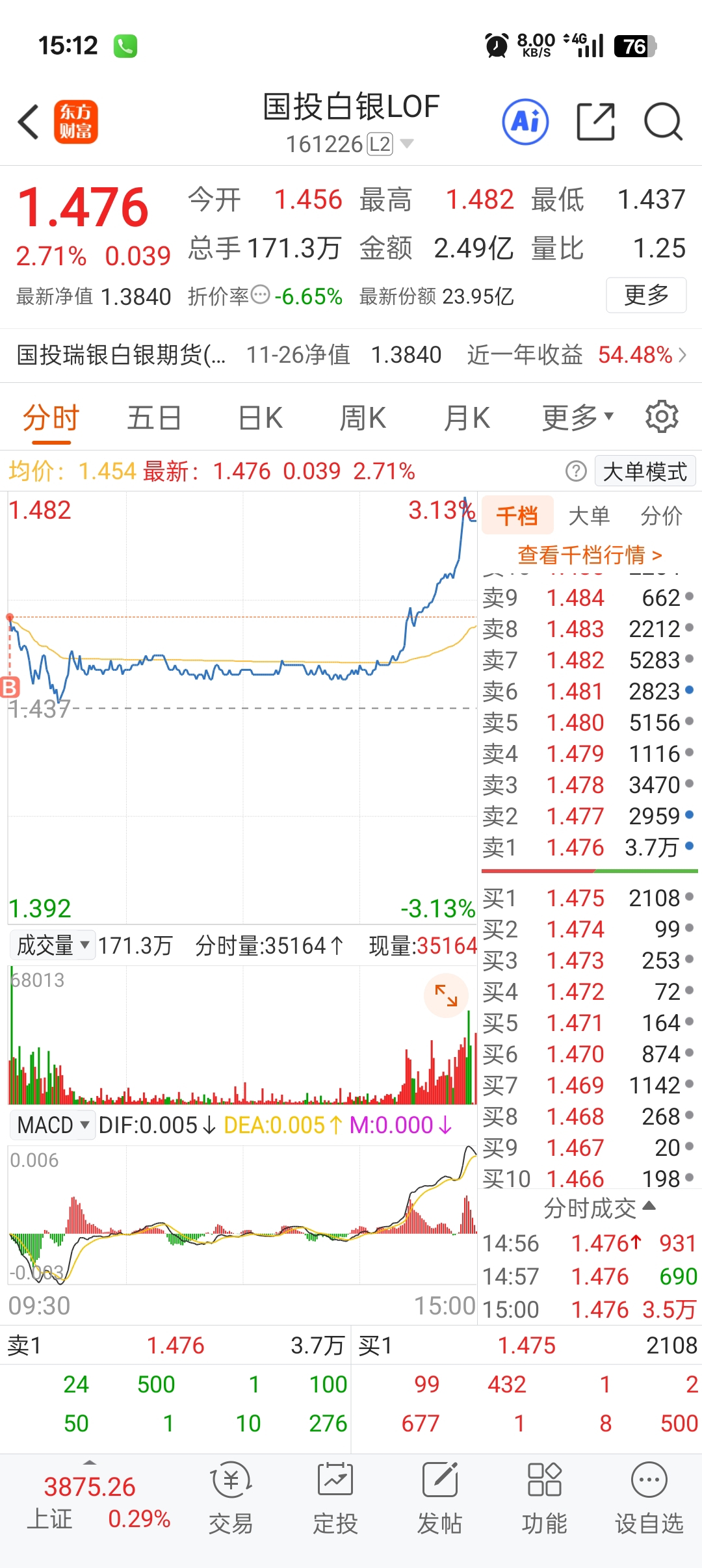 $国投白银LOF(SZ161226)$ 溢价七个点,太疯狂了。幸亏早上又买回来了一点