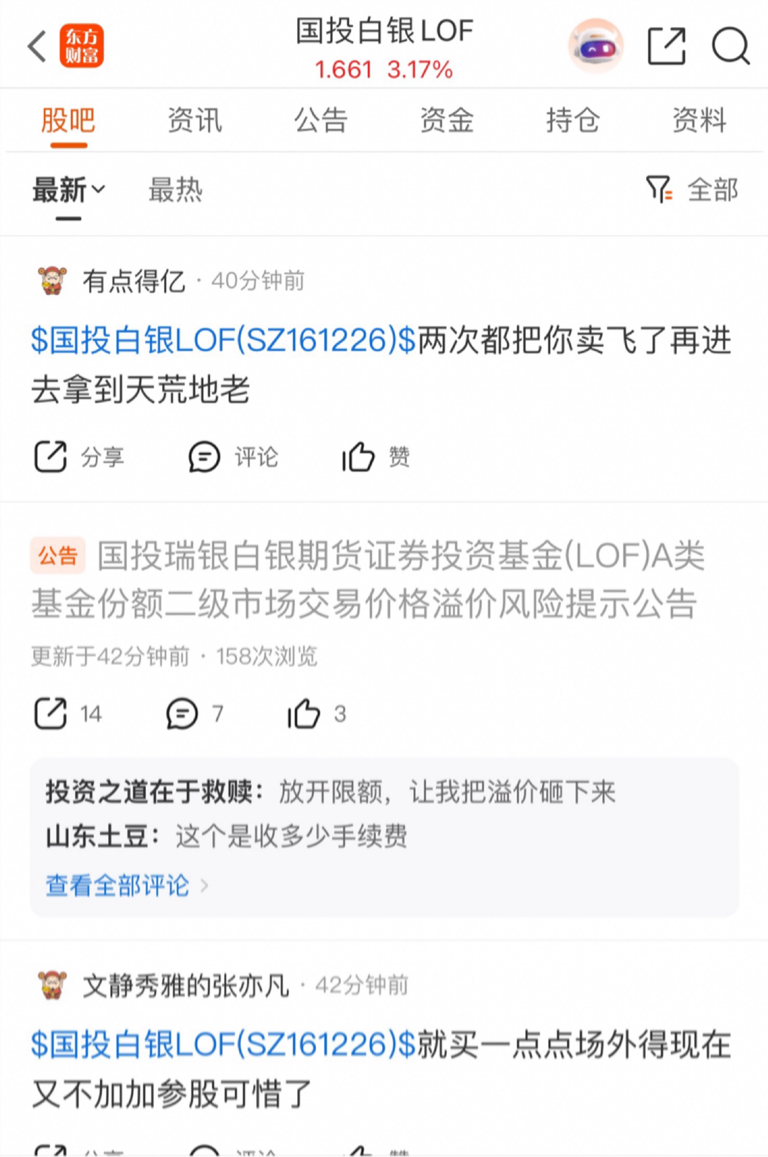 $国投白银LOF(SZ161226)$ 记住今天叫你买的人,都是基金公司的“员工”产业链唱多忽悠你接盘的 懂吗?去查查新闻就知道每个月多少这种事情被揪出来,等等又会有一群自以为聪明被洗脑的人以为跌了能抄底的进去殊不知其实公告已经给了答案,“去溢价”这说明明天开始正式往下的节奏 今天抄底的明天开始哇哇叫 然后不停补仓 结果补仓进去的正好给基金公司出货了哈哈哈