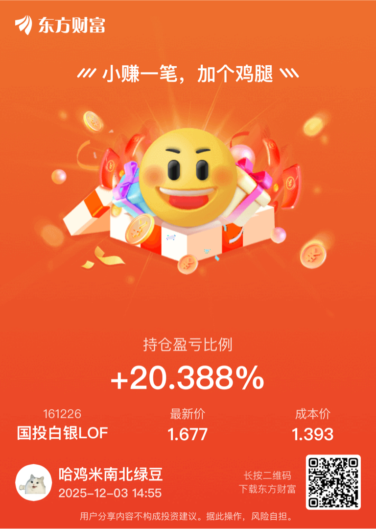 $国投白银LOF(SZ161226)$ 银价有效突破50年来的历史高点,就不会2—3周走完,60以下买依旧有空间。