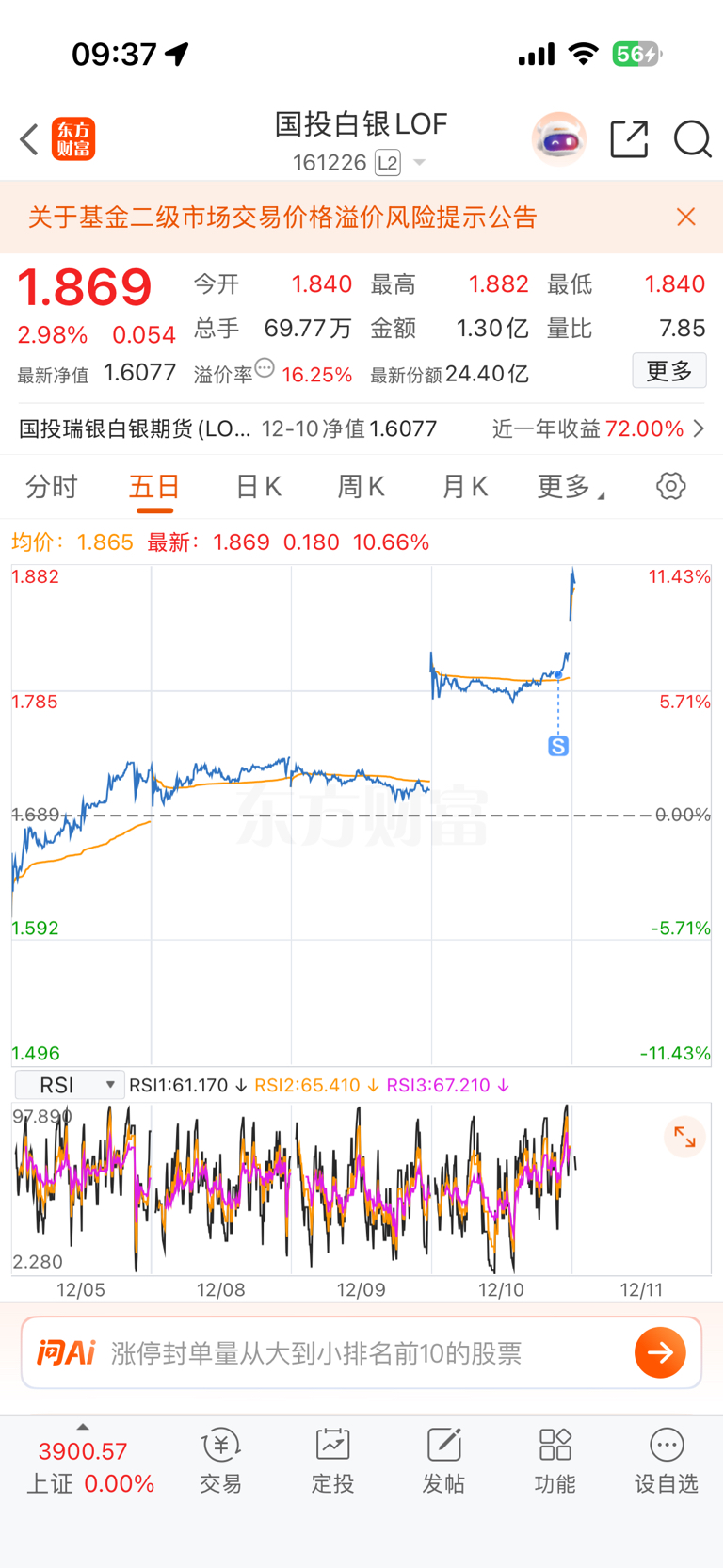 $国投白银LOF(SZ161226)$ 我以为要杀溢价