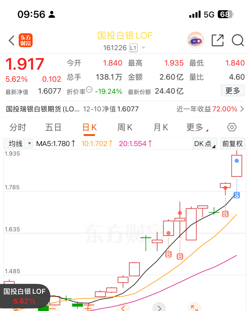 $国投白银LOF(SZ161226)$ 走了 后面应该还可以涨2天