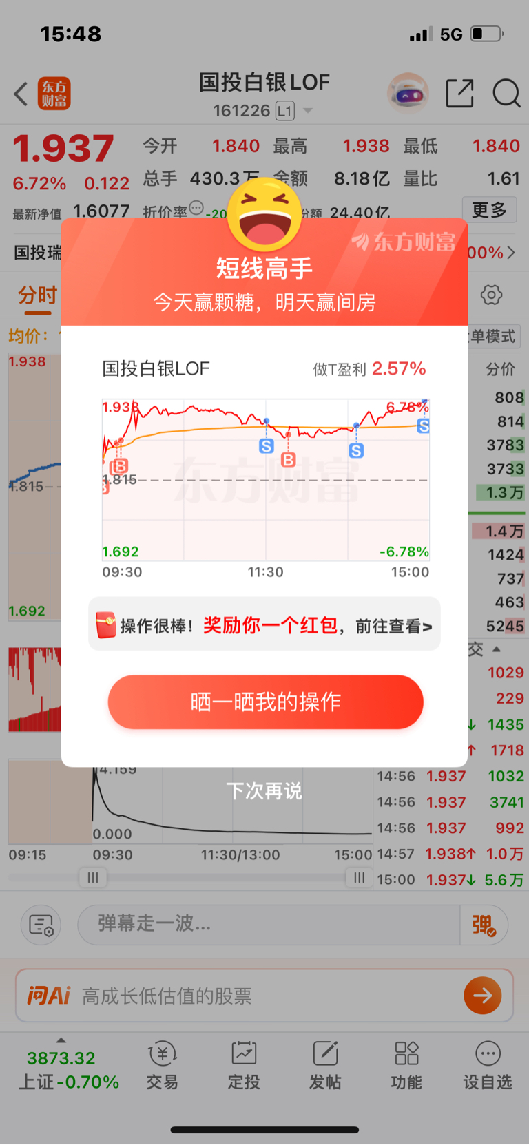 散户天天担心溢价问题,白银价格天天涨,基金价格天天涨,又是吃肉的一天,明天不出意