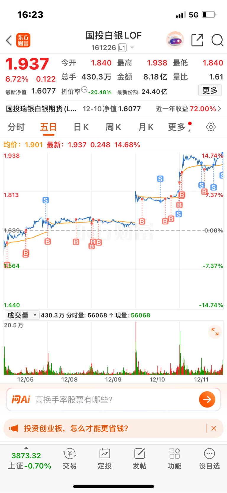 $国投白银LOF(SZ161226)$ 散户天天担心溢价问题,白银价格天天涨,基金价格天天涨,又是吃肉的一天,明天不出意外还有肉汤吃,还是那句话59到60位置有强支撑,这波短期看好摸64到65,降息利好已兑线,具体的还得看老没对委内瑞拉的态度啦