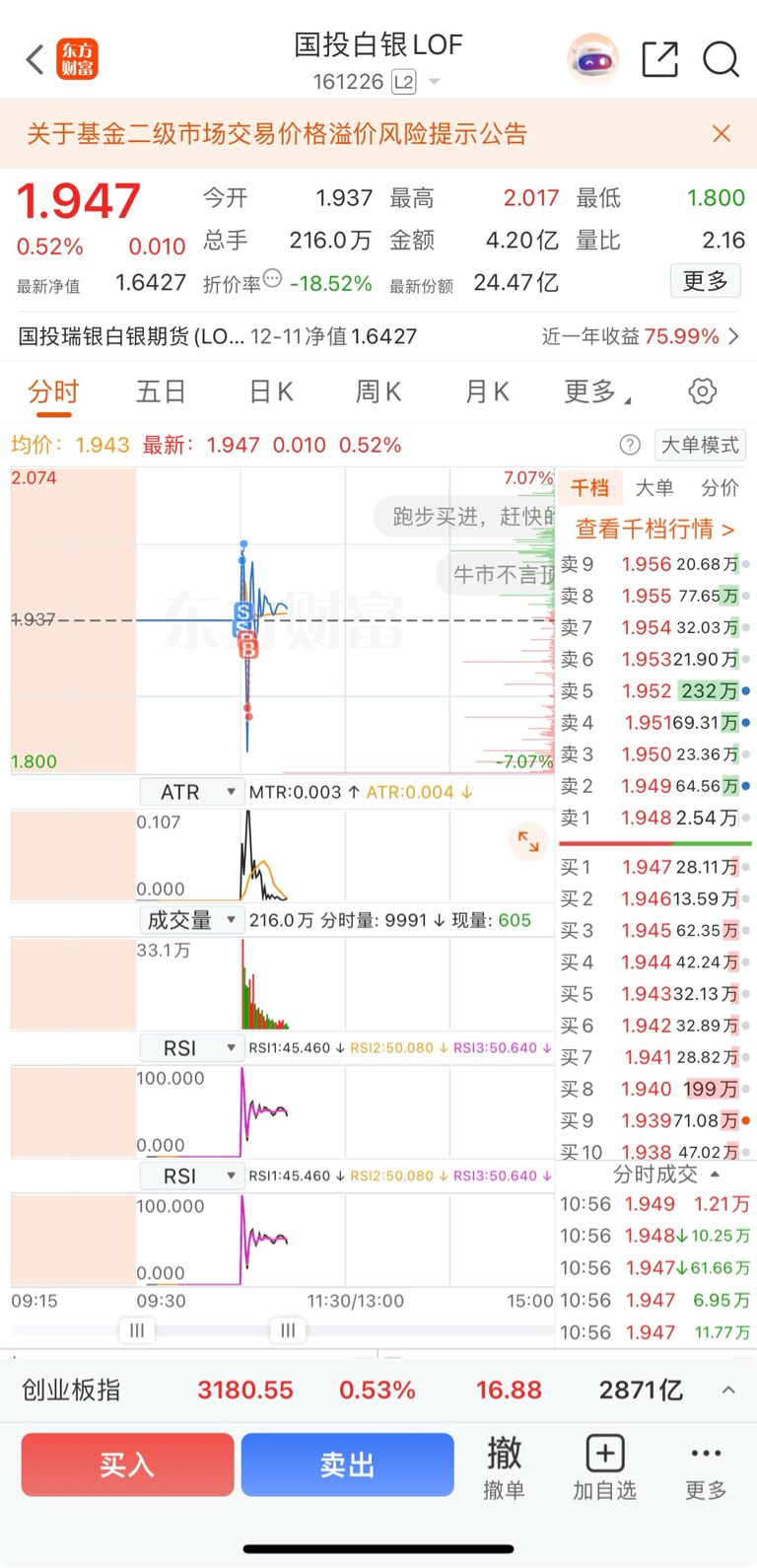 $国投白银LOF(SZ161226)$ 感觉良好,居然没跌停。