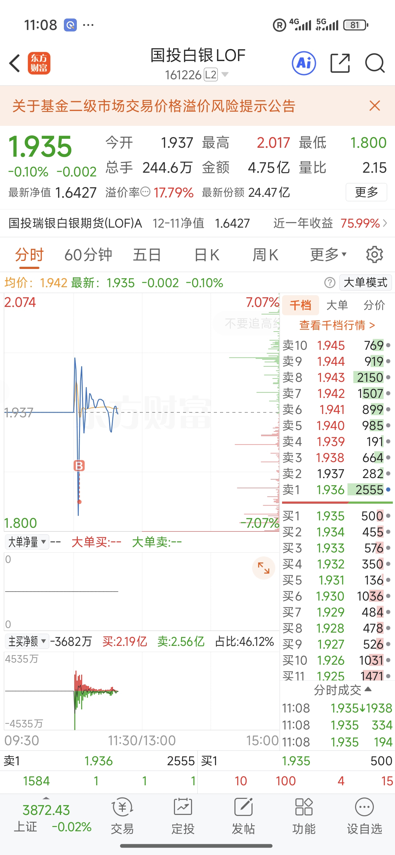 $国投白银LOF(SZ161226)$ 你们行不行,菜别怪溢价,怪自己没操作