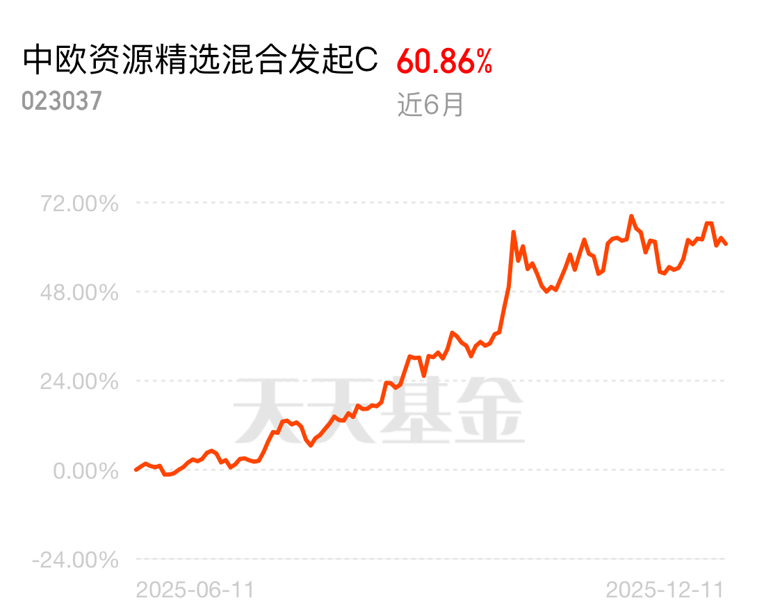 国内高端制造一直在扩产,新能源行业也在爆发,对铜、钴等资源的需求只会增不会减,增长确定性拉满。中欧资源精选混合发起 C 近 6 个月 60.86%,长期持有,跟着产业趋势赚。